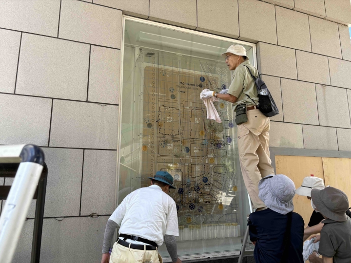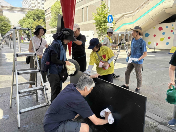 「ぴかぴかアートプログラム」は、ファーレ立川のアート作品をきれいに清掃する年2回の恒例行事。