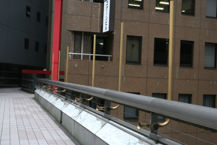歩道橋の手すりに街の音が聞こえる伝声管の作品を造ったアーティストです。